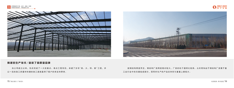 中昌建設(shè)(遼寧)有限公司是集專業(yè)鋼結(jié)構(gòu)設(shè)計、制造、安裝、鉚焊部件加工于一體的綜合性企業(yè)。公司具有國家建設(shè)部頒發(fā)的鋼結(jié)構(gòu)施工資質(zhì),可以從事各類輕、重型鋼結(jié)構(gòu)、網(wǎng)架結(jié)構(gòu)、各種鋼結(jié)構(gòu)廠房及幕墻工程、彩板維護結(jié)構(gòu)的設(shè)計、制造和安裝。 公司位于大連市開發(fā)區(qū)工業(yè)園區(qū)內(nèi)。廠區(qū)占地面積近2.5萬平方米,其中主生產(chǎn)車間占地1.9萬平方米,并有建筑面積3.5千平米的綜合辦公樓。擁有國內(nèi)先進的半自動化鋼結(jié)構(gòu)生產(chǎn)線,擁有彩板及復合板生產(chǎn)機組10余臺套。鉚焊車間主要生產(chǎn)出口零部件和通用機械鉚焊件。公司現(xiàn)有員工150余人,其中擁有專家、國家一級注冊結(jié)構(gòu)工程師在內(nèi)的高、中級專業(yè)人才20余人,他們從事鋼結(jié)構(gòu)工程多年,有豐富的理論知識和實踐經(jīng)驗。咨詢電話:孫先生 13842866543,公司郵箱dlzggjg@163.com,QQ郵箱2398306553@qq.com。